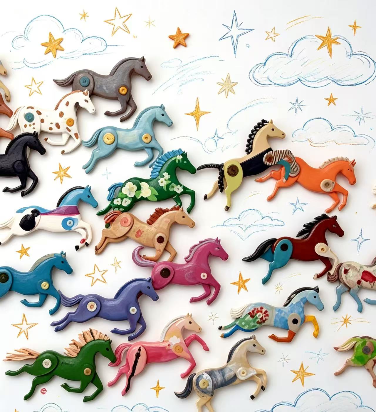 在“共创时代”的展览主题下,银河不再只是背景,而成为由个体想象共同构建的空间;天马也不再是单一形象,而是在拼接与断裂中不断生成的存在。作品既呈现东方传统意象的当代表达,更记录了从个体创作到集体构建的转化路径——每一个人的想象力,都是奔腾的天马。