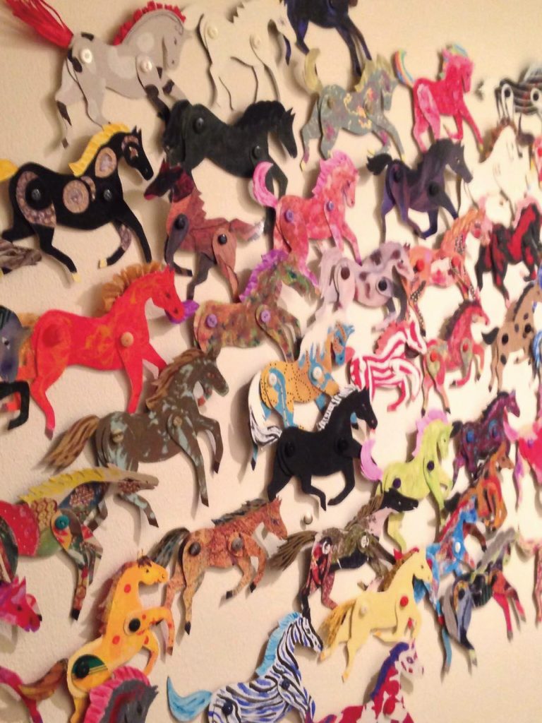 “天马行空”是中国传统文化中对自由想象与艺术创造力的经典隐喻。本次共创作品以这一概念为起点,将天马与银河拆解为无数独立的视觉模块,结合皮影戏的剪影与拼接逻辑,邀请多位参与者共同完成创作。每位参与者亲手剪裁、绘制并重组出属于自己的天马皮影,最终在墙面上拼合成一幅流动的星空图景。